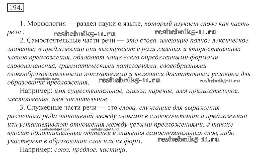 Готовая домашняя работа с ответами по Русскому языку за 10, 11 класс Греков, Крючков, Чешко Учебник Просвещение 2016 - Упражнения 194