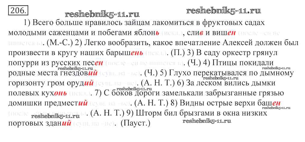 Готовая домашняя работа с ответами по Русскому языку за 10, 11 класс Греков, Крючков, Чешко Учебник Просвещение 2016 - Упражнения 206