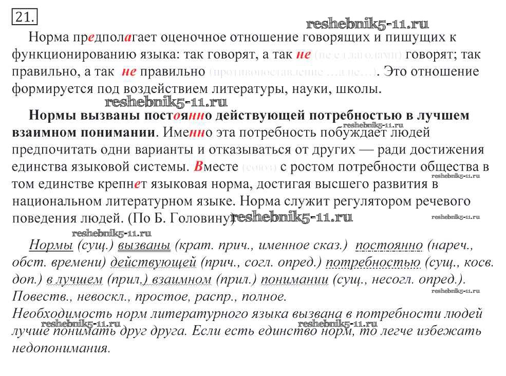 Готовая домашняя работа с ответами по Русскому языку за 10, 11 класс Греков, Крючков, Чешко Учебник Просвещение 2016 - Упражнения 21