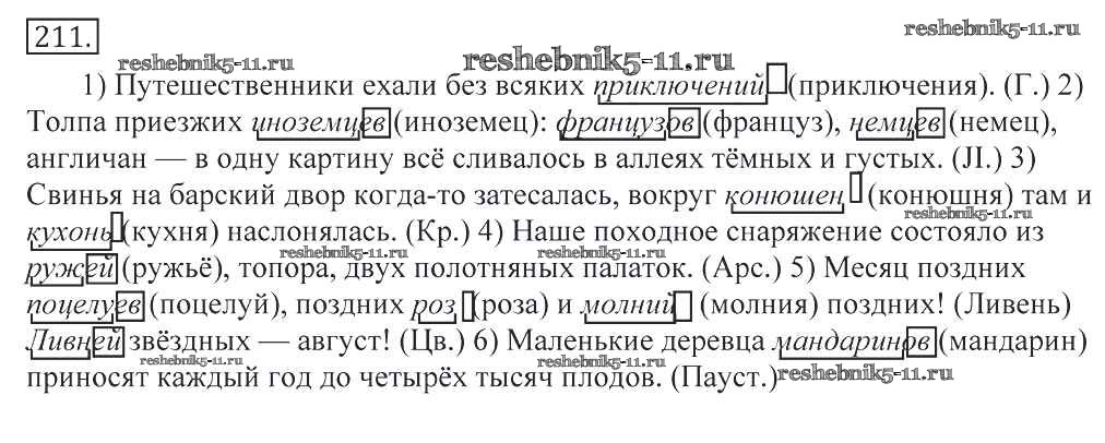 Готовая домашняя работа с ответами по Русскому языку за 10, 11 класс Греков, Крючков, Чешко Учебник Просвещение 2016 - Упражнения 211