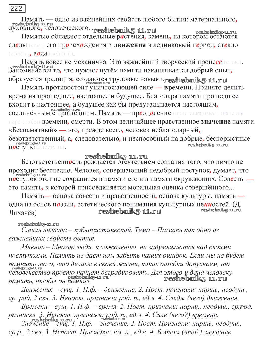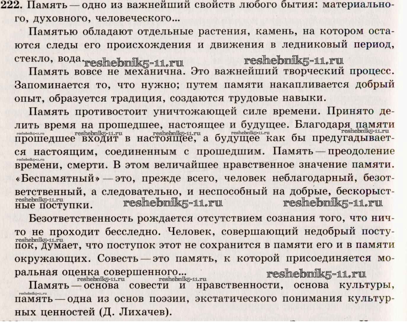 Готовая домашняя работа с ответами по Русскому языку за 10, 11 класс Греков, Крючков, Чешко Учебник Просвещение 2016 - Упражнения 222