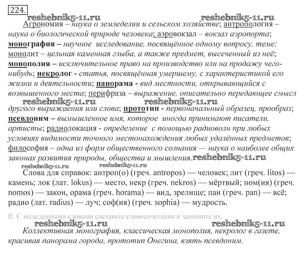 Готовая домашняя работа с ответами по Русскому языку за 10, 11 класс Греков, Крючков, Чешко Учебник Просвещение 2016 - Упражнения 224