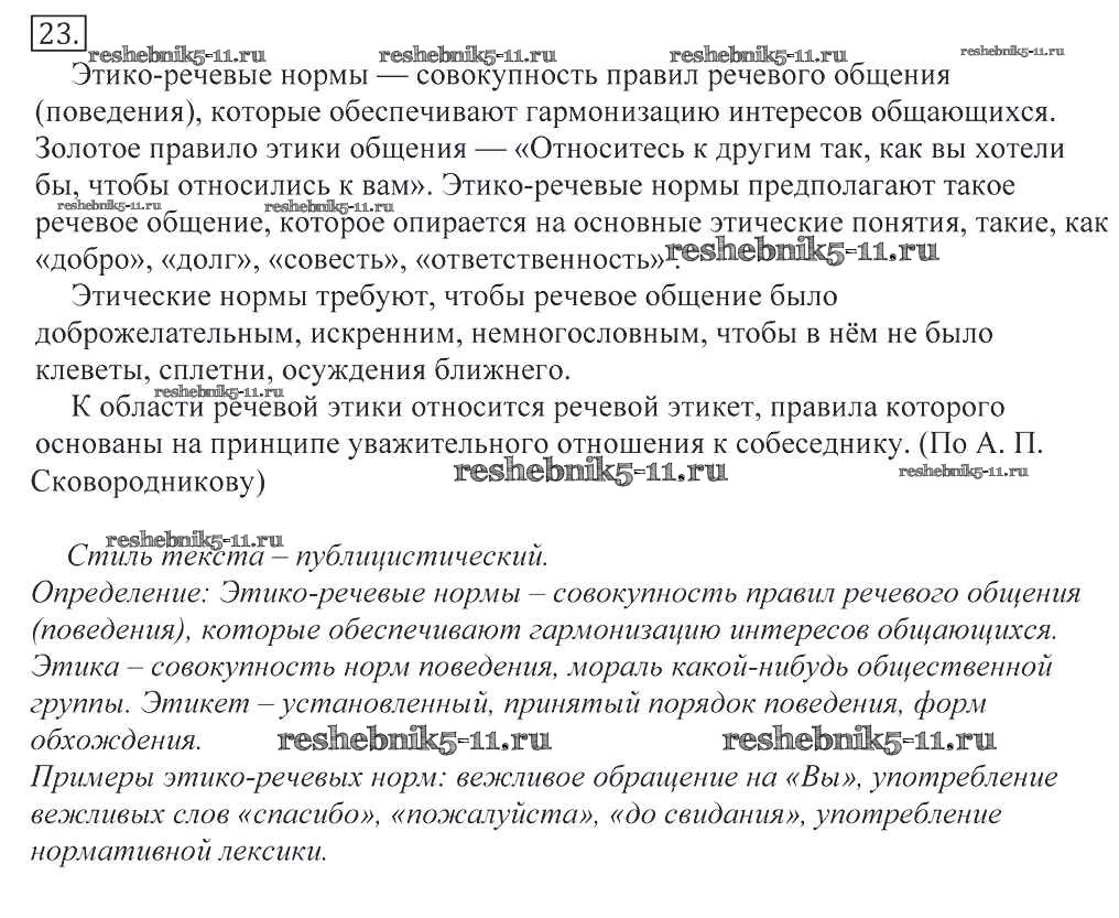 Готовая домашняя работа с ответами по Русскому языку за 10, 11 класс Греков, Крючков, Чешко Учебник Просвещение 2016 - Упражнения 23