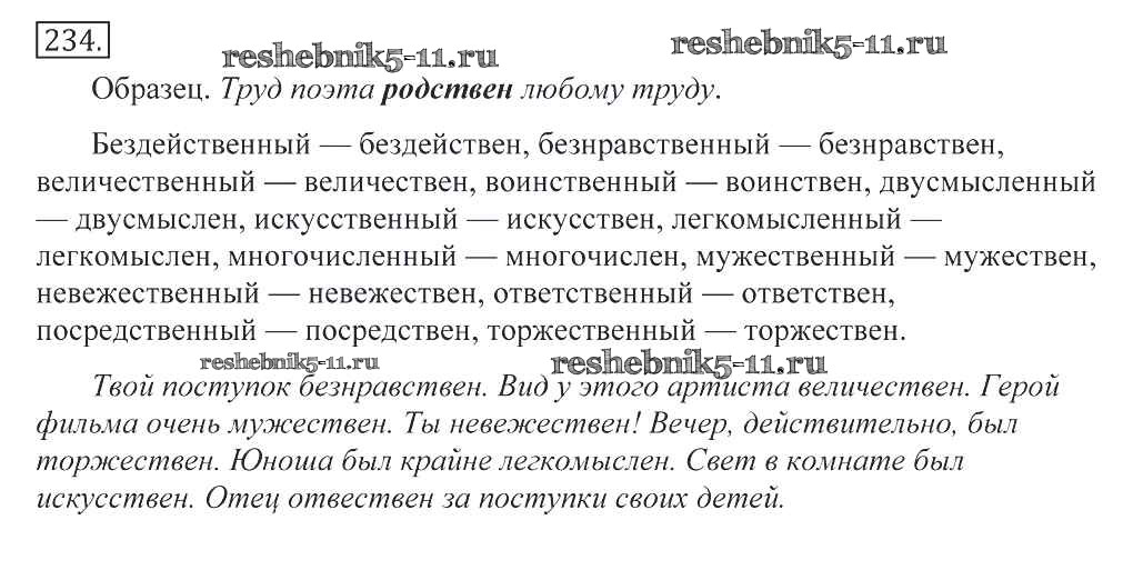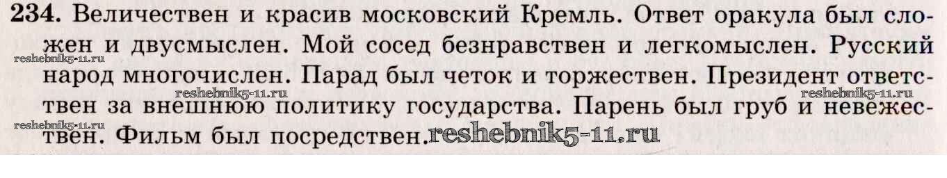 Готовая домашняя работа с ответами по Русскому языку за 10, 11 класс Греков, Крючков, Чешко Учебник Просвещение 2016 - Упражнения 234