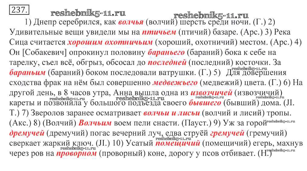 Готовая домашняя работа с ответами по Русскому языку за 10, 11 класс Греков, Крючков, Чешко Учебник Просвещение 2016 - Упражнения 237