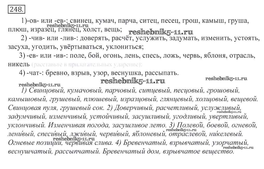 Готовая домашняя работа с ответами по Русскому языку за 10, 11 класс Греков, Крючков, Чешко Учебник Просвещение 2016 - Упражнения 248
