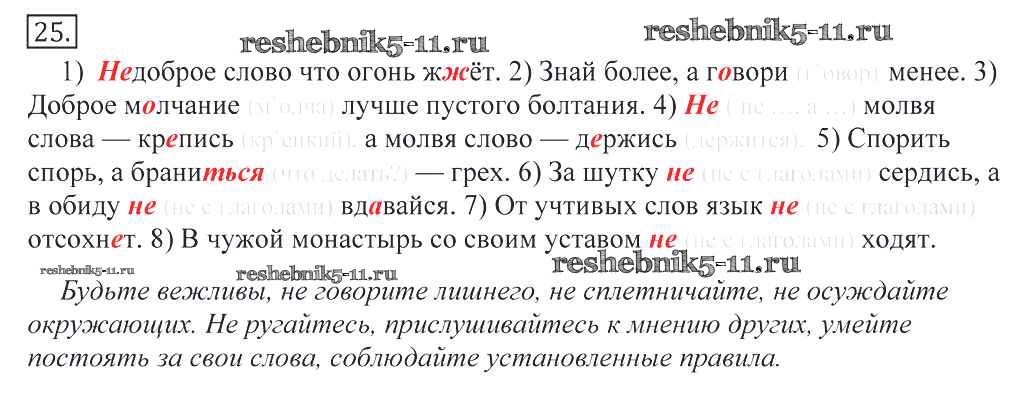 Готовая домашняя работа с ответами по Русскому языку за 10, 11 класс Греков, Крючков, Чешко Учебник Просвещение 2016 - Упражнения 25