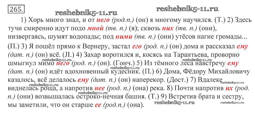 Готовая домашняя работа с ответами по Русскому языку за 10, 11 класс Греков, Крючков, Чешко Учебник Просвещение 2016 - Упражнения 265