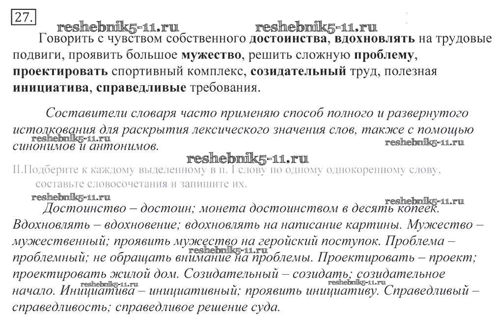 Готовая домашняя работа с ответами по Русскому языку за 10, 11 класс Греков, Крючков, Чешко Учебник Просвещение 2016 - Упражнения 27