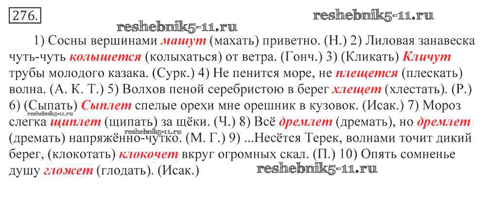 Готовая домашняя работа с ответами по Русскому языку за 10, 11 класс Греков, Крючков, Чешко Учебник Просвещение 2016 - Упражнения 276