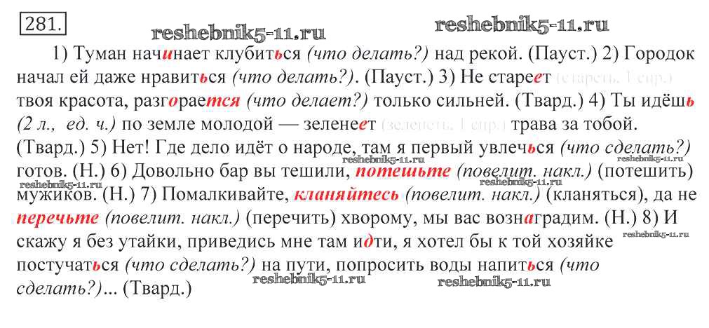 Готовая домашняя работа с ответами по Русскому языку за 10, 11 класс Греков, Крючков, Чешко Учебник Просвещение 2016 - Упражнения 281