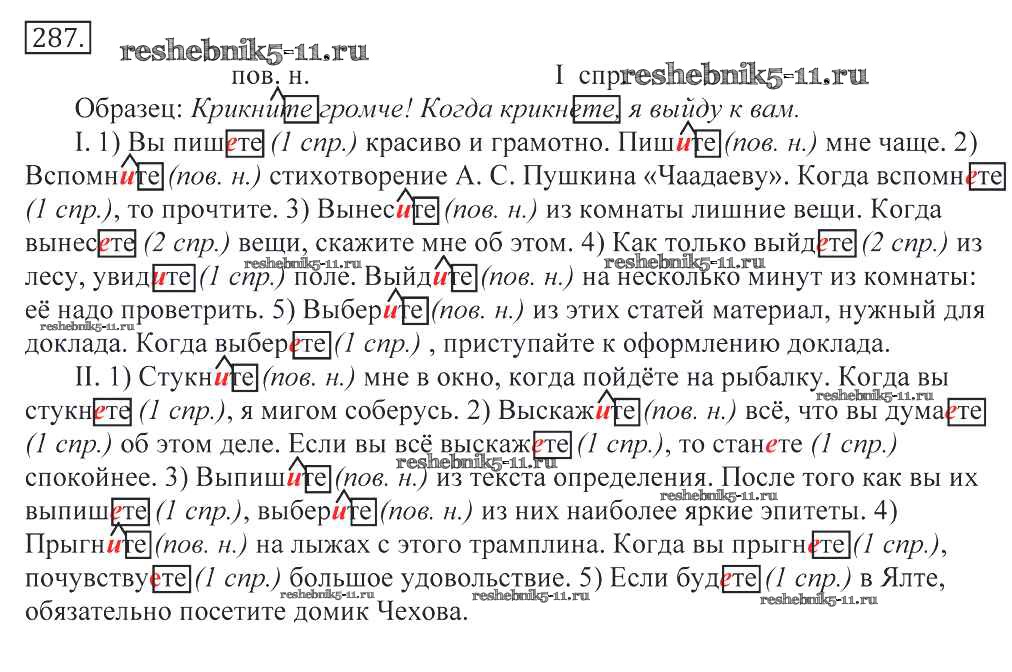 Готовая домашняя работа с ответами по Русскому языку за 10, 11 класс Греков, Крючков, Чешко Учебник Просвещение 2016 - Упражнения 287