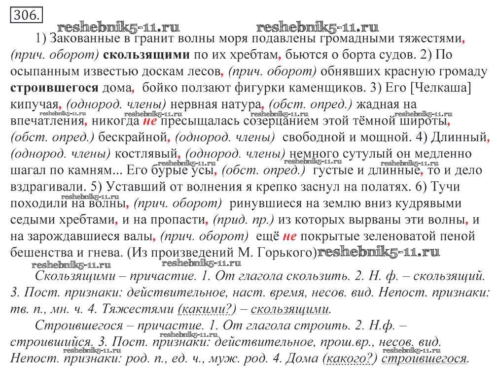 Готовая домашняя работа с ответами по Русскому языку за 10, 11 класс Греков, Крючков, Чешко Учебник Просвещение 2016 - Упражнения 306
