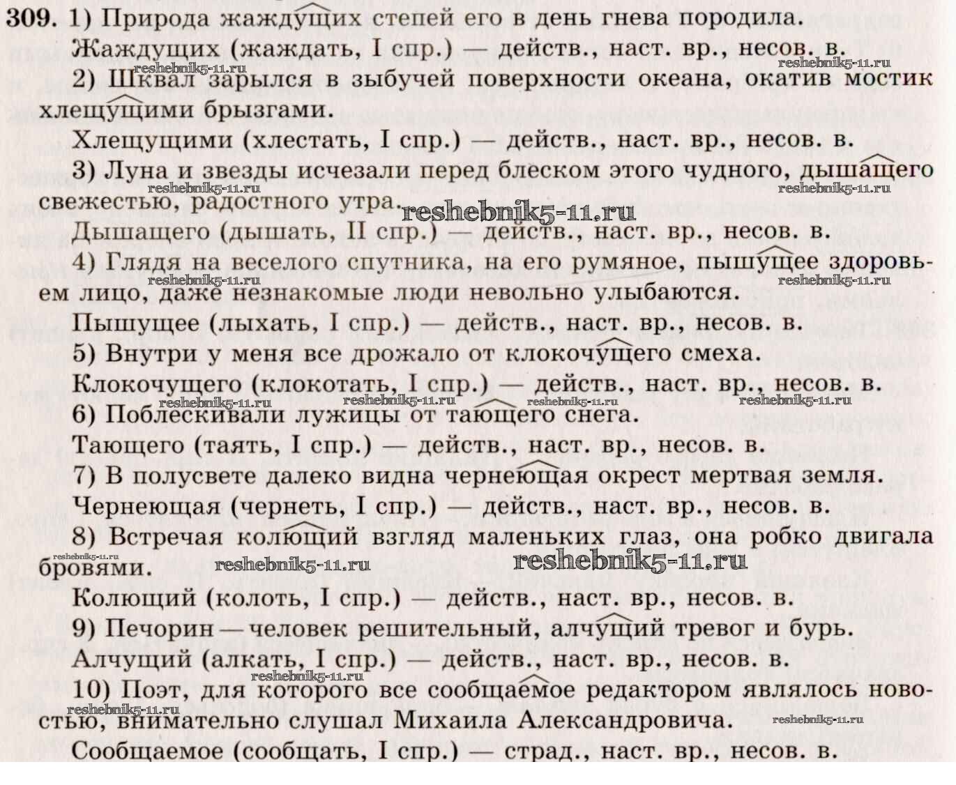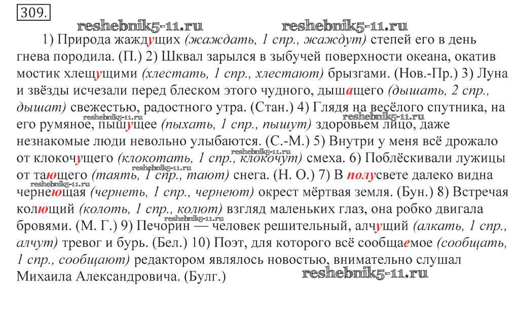 Готовая домашняя работа с ответами по Русскому языку за 10, 11 класс Греков, Крючков, Чешко Учебник Просвещение 2016 - Упражнения 309