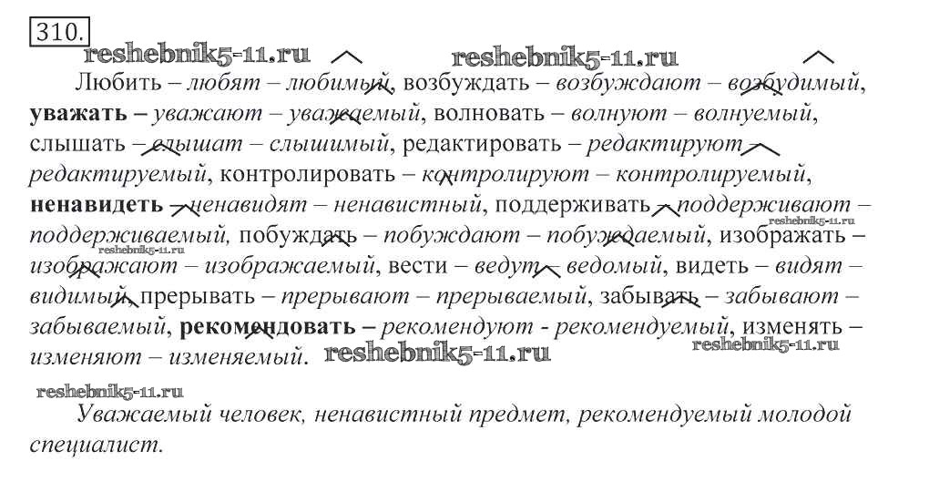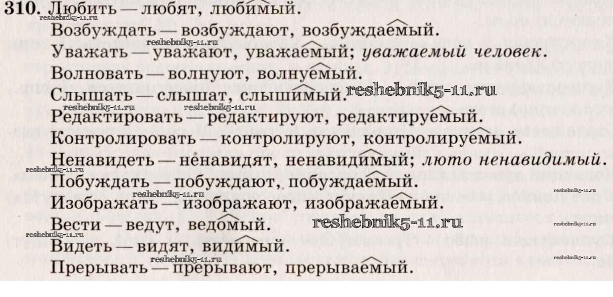 Готовая домашняя работа с ответами по Русскому языку за 10, 11 класс Греков, Крючков, Чешко Учебник Просвещение 2016 - Упражнения 310