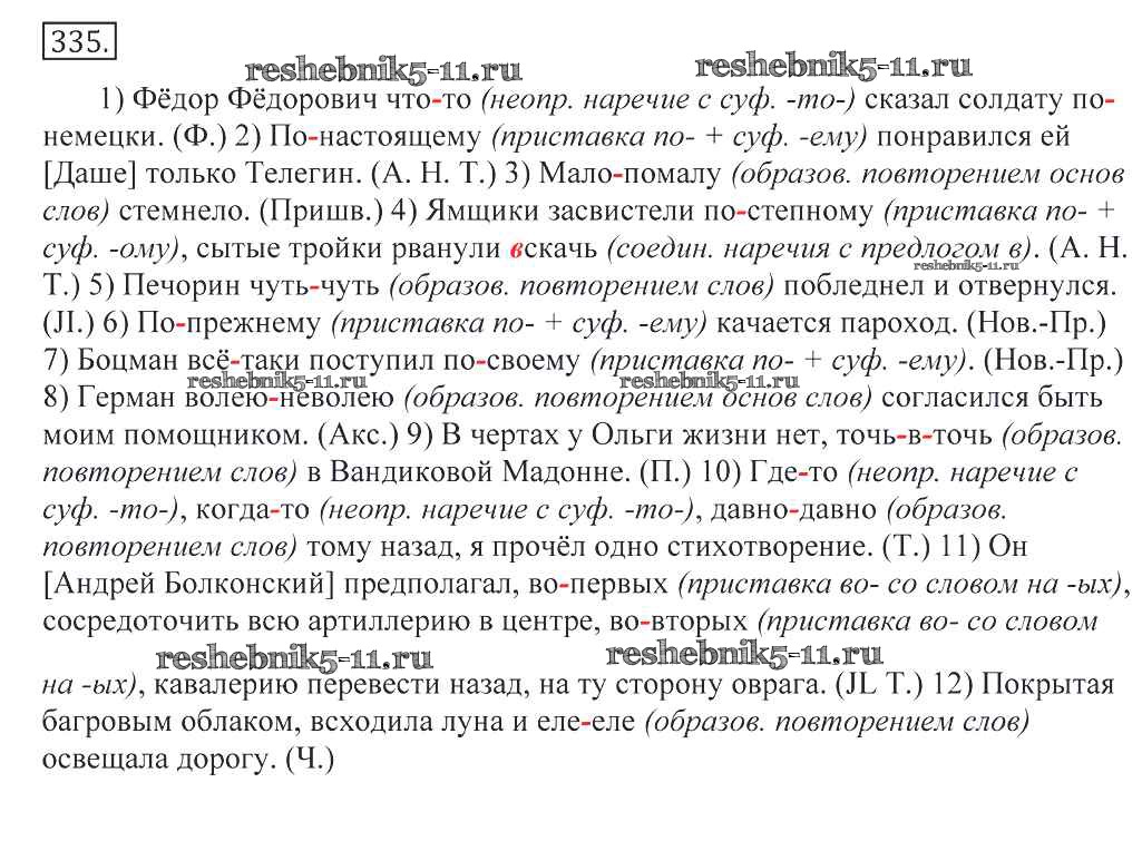 Готовая домашняя работа с ответами по Русскому языку за 10, 11 класс Греков, Крючков, Чешко Учебник Просвещение 2016 - Упражнения 335
