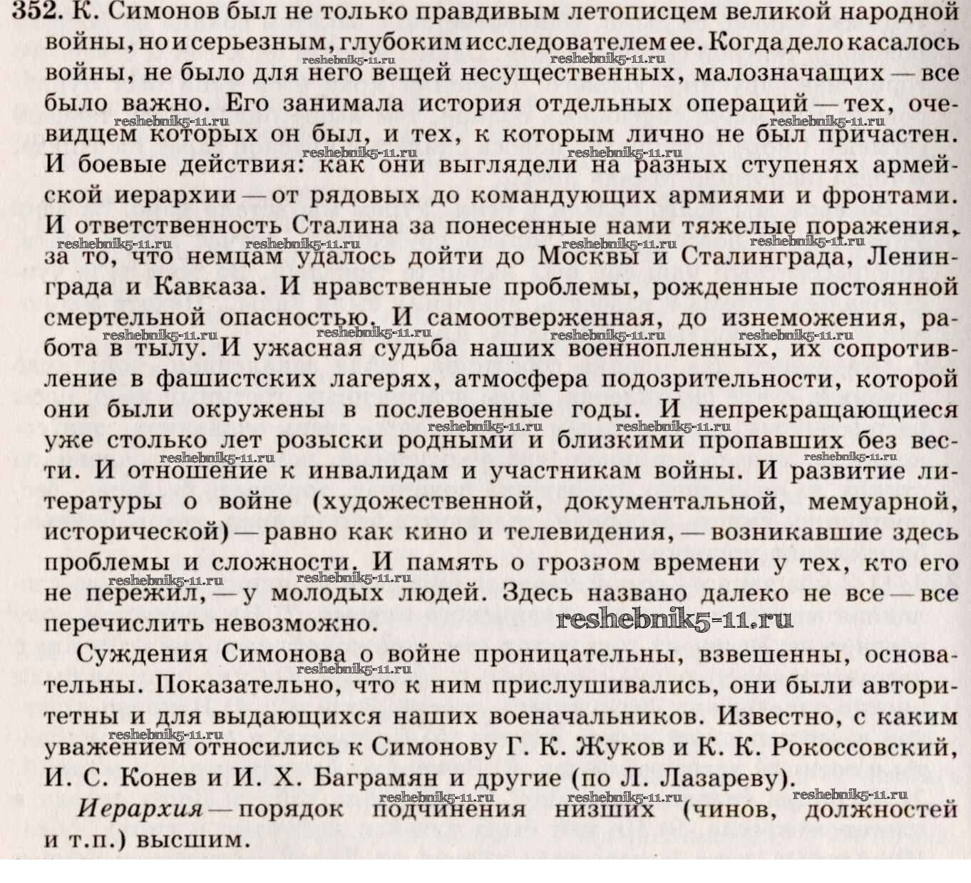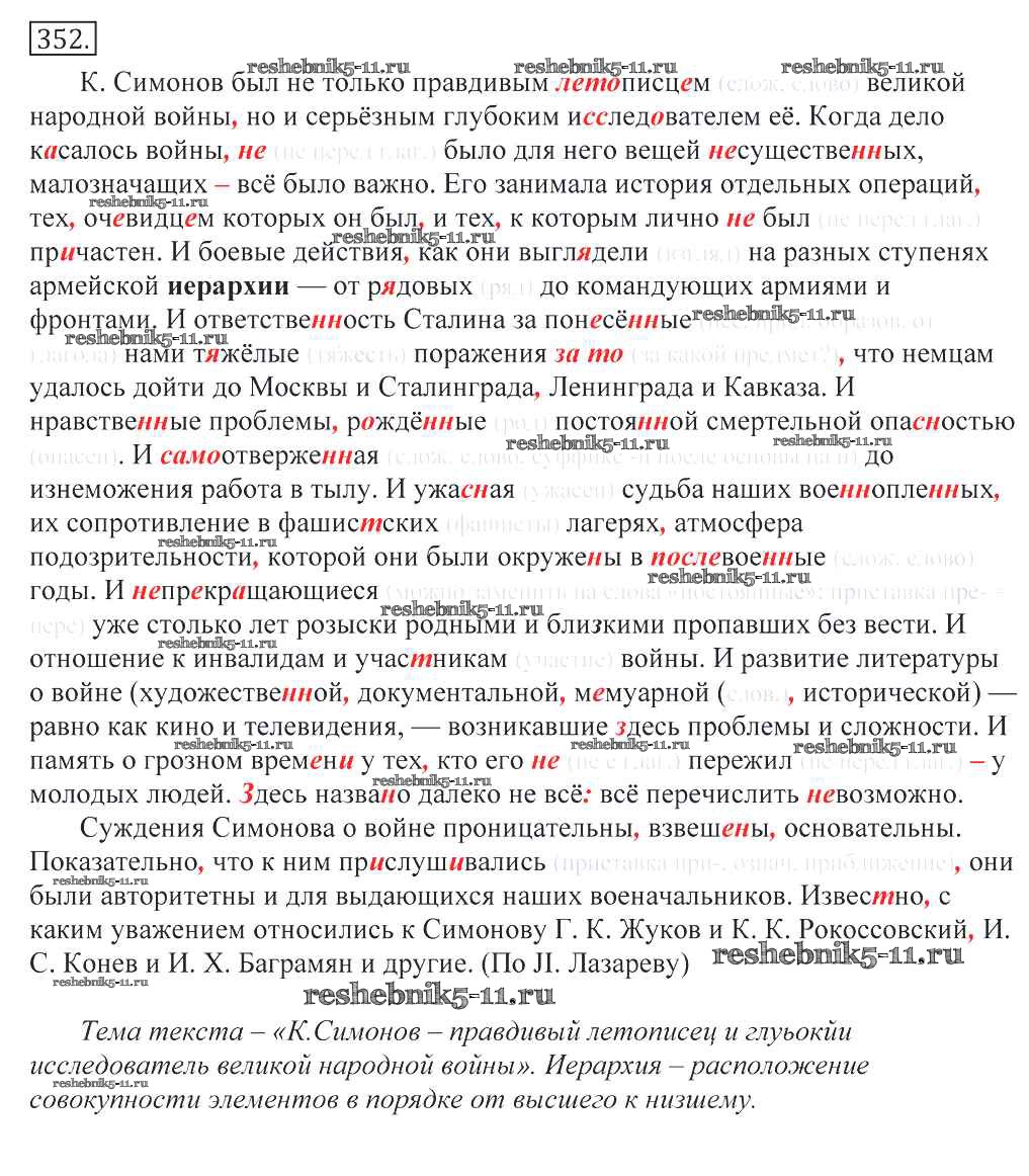Готовая домашняя работа с ответами по Русскому языку за 10, 11 класс Греков, Крючков, Чешко Учебник Просвещение 2016 - Упражнения 352