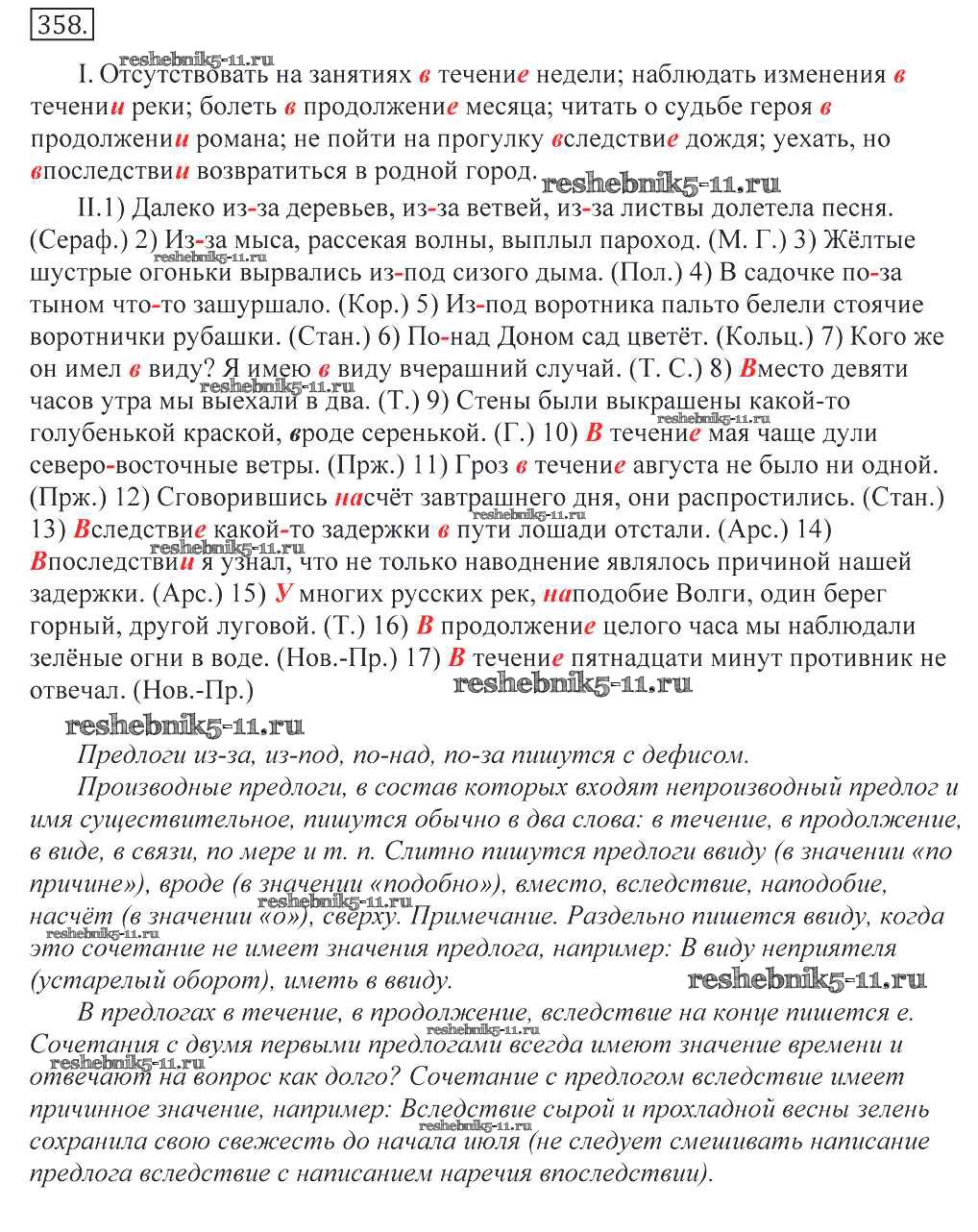 Готовая домашняя работа с ответами по Русскому языку за 10, 11 класс Греков, Крючков, Чешко Учебник Просвещение 2016 - Упражнения 358