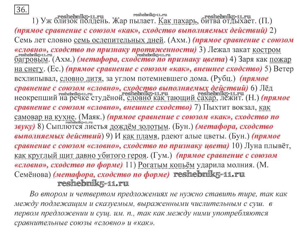 Готовая домашняя работа с ответами по Русскому языку за 10, 11 класс Греков, Крючков, Чешко Учебник Просвещение 2016 - Упражнения 36
