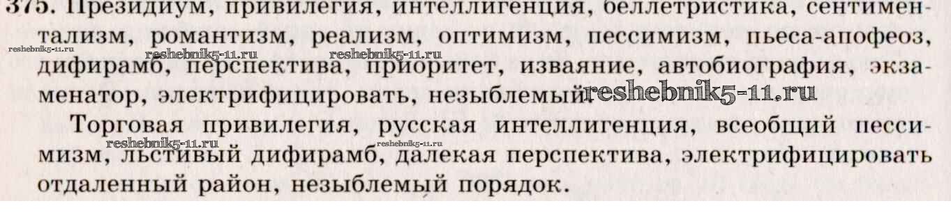 Готовая домашняя работа с ответами по Русскому языку за 10, 11 класс Греков, Крючков, Чешко Учебник Просвещение 2016 - Упражнения 375