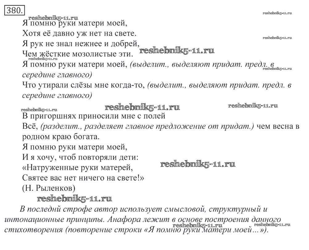 Готовая домашняя работа с ответами по Русскому языку за 10, 11 класс Греков, Крючков, Чешко Учебник Просвещение 2016 - Упражнения 380