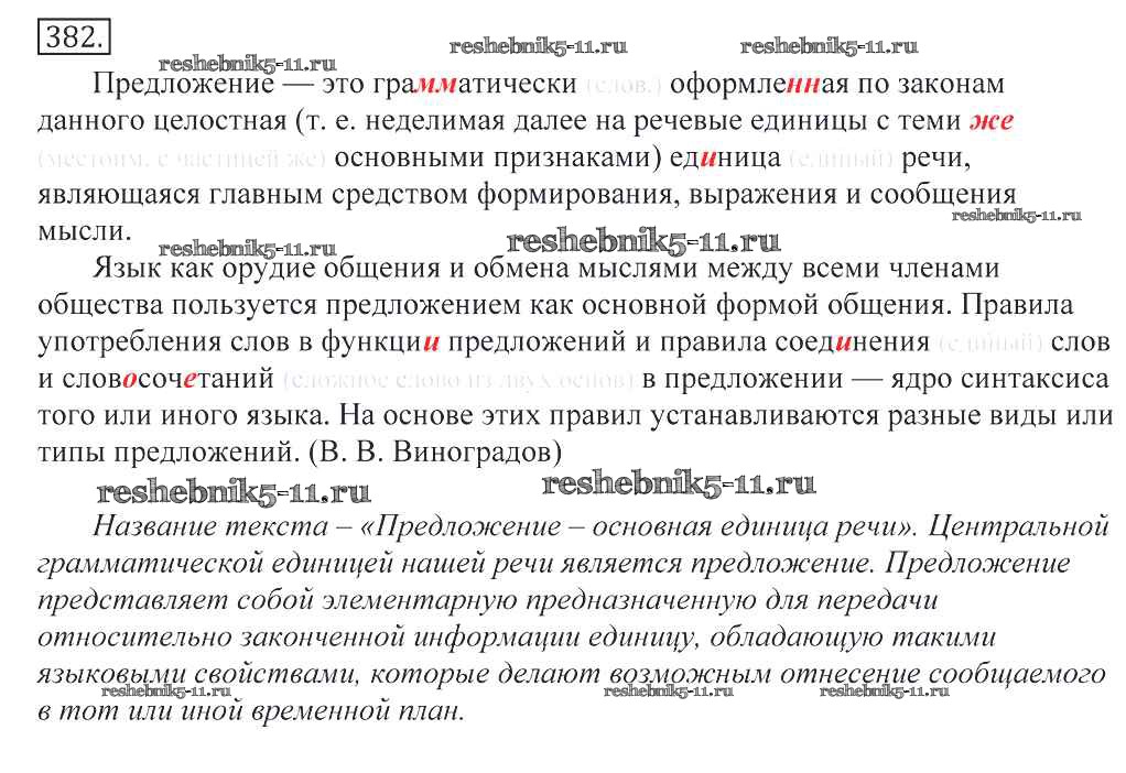 Готовая домашняя работа с ответами по Русскому языку за 10, 11 класс Греков, Крючков, Чешко Учебник Просвещение 2016 - Упражнения 382