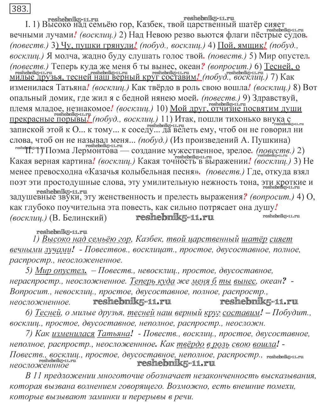 Готовая домашняя работа с ответами по Русскому языку за 10, 11 класс Греков, Крючков, Чешко Учебник Просвещение 2016 - Упражнения 383