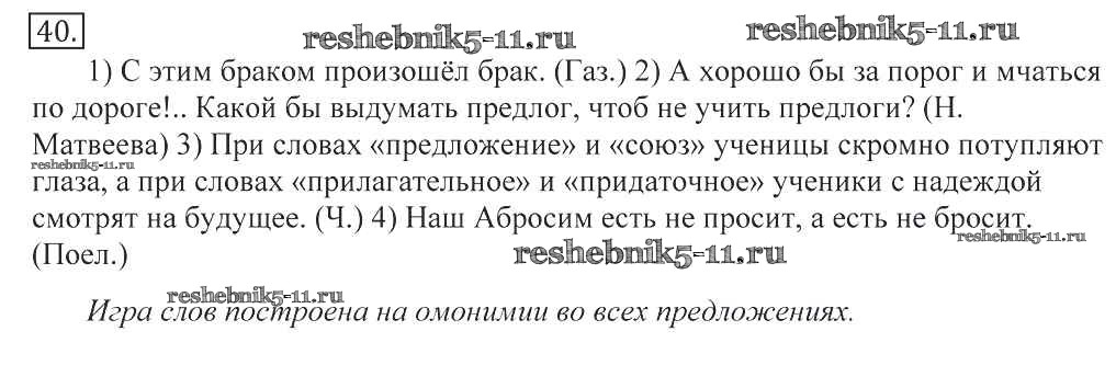 Готовая домашняя работа с ответами по Русскому языку за 10, 11 класс Греков, Крючков, Чешко Учебник Просвещение 2016 - Упражнения 40