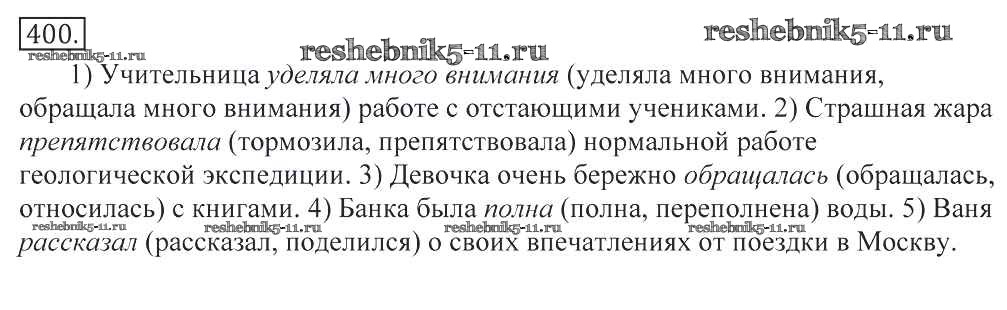 Готовая домашняя работа с ответами по Русскому языку за 10, 11 класс Греков, Крючков, Чешко Учебник Просвещение 2016 - Упражнения 400