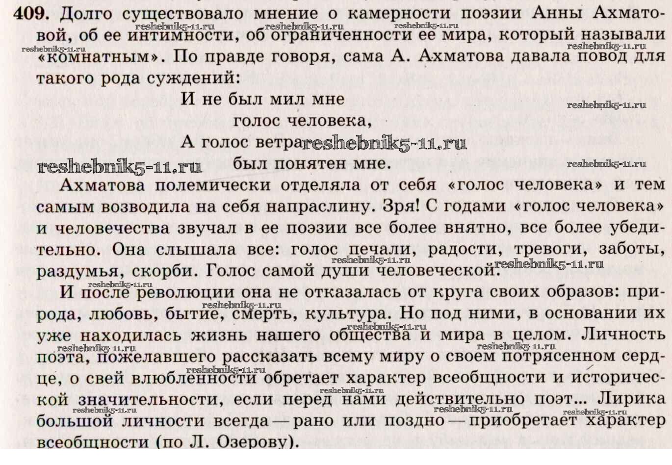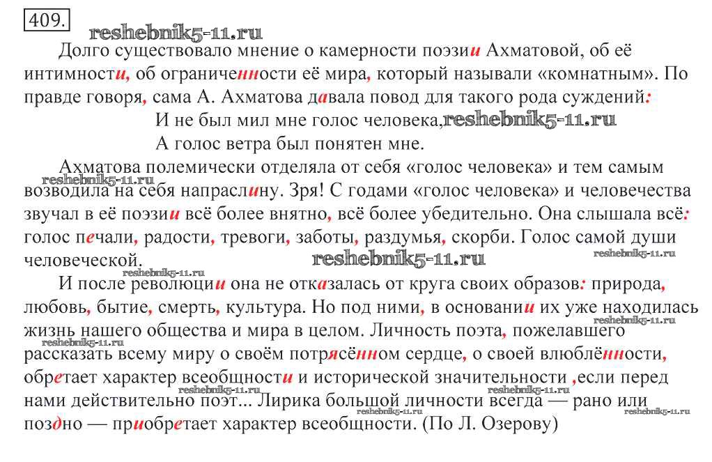 Готовая домашняя работа с ответами по Русскому языку за 10, 11 класс Греков, Крючков, Чешко Учебник Просвещение 2016 - Упражнения 409