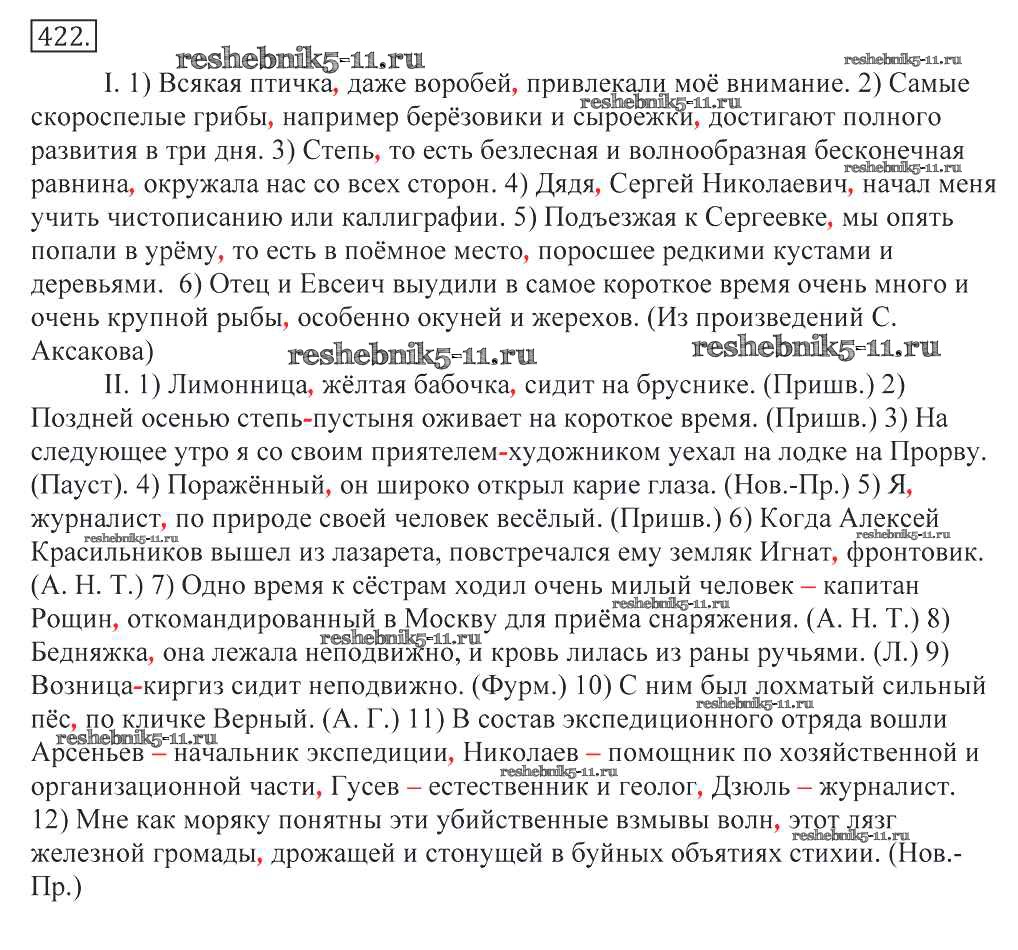 Готовая домашняя работа с ответами по Русскому языку за 10, 11 класс Греков, Крючков, Чешко Учебник Просвещение 2016 - Упражнения 422