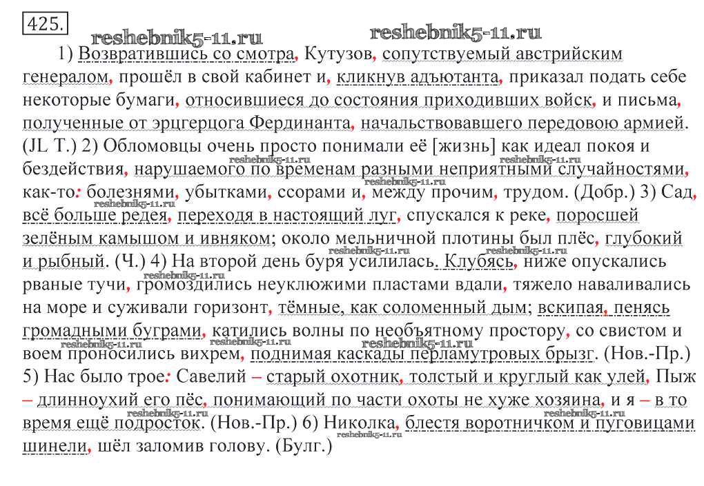 Готовая домашняя работа с ответами по Русскому языку за 10, 11 класс Греков, Крючков, Чешко Учебник Просвещение 2016 - Упражнения 425