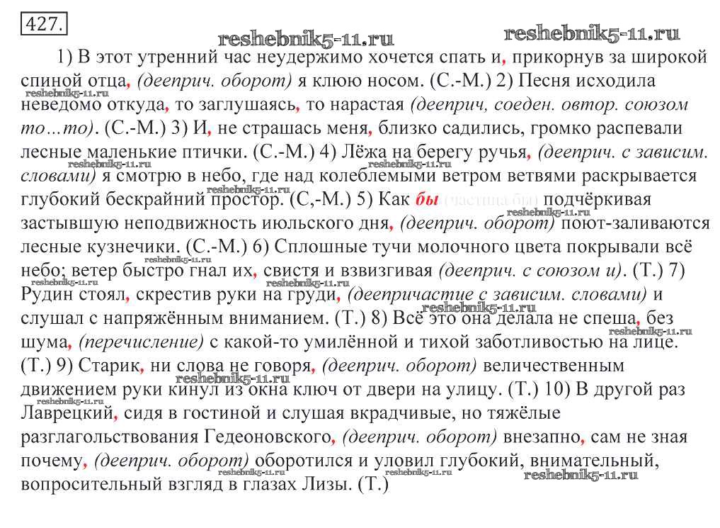 Готовая домашняя работа с ответами по Русскому языку за 10, 11 класс Греков, Крючков, Чешко Учебник Просвещение 2016 - Упражнения 427