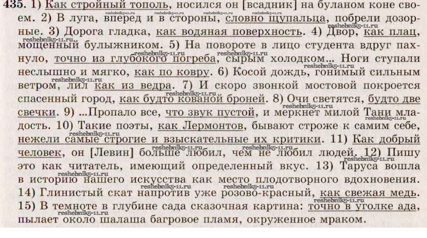 Готовая домашняя работа с ответами по Русскому языку за 10, 11 класс Греков, Крючков, Чешко Учебник Просвещение 2016 - Упражнения 435