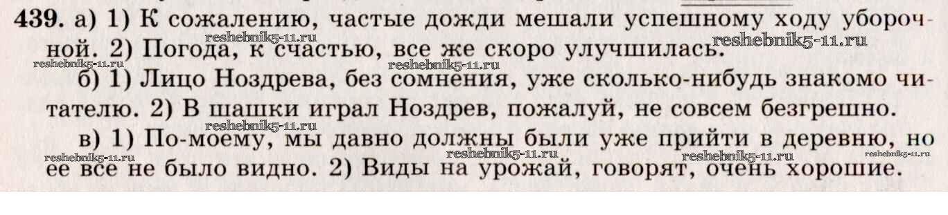 Готовая домашняя работа с ответами по Русскому языку за 10, 11 класс Греков, Крючков, Чешко Учебник Просвещение 2016 - Упражнения 439