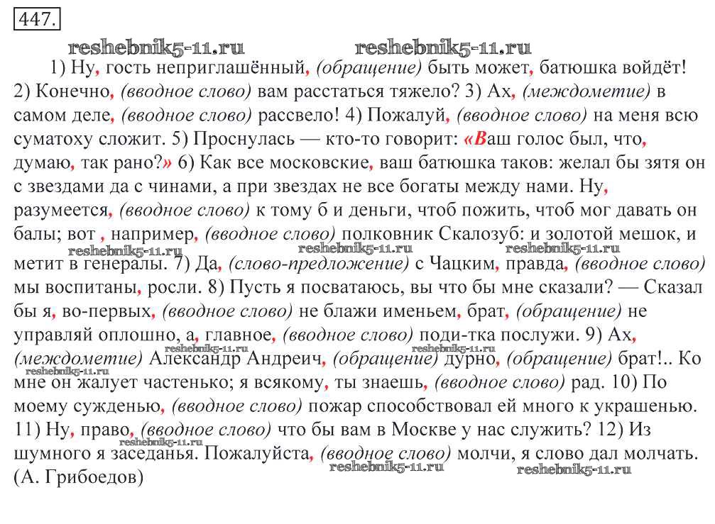Готовая домашняя работа с ответами по Русскому языку за 10, 11 класс Греков, Крючков, Чешко Учебник Просвещение 2016 - Упражнения 447