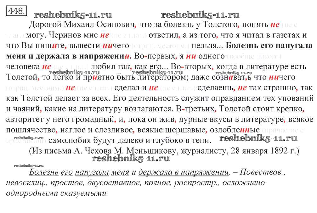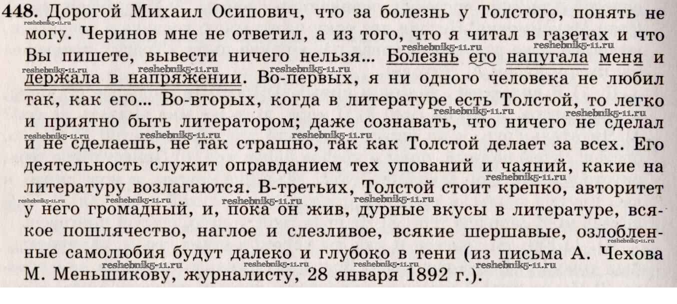 Готовая домашняя работа с ответами по Русскому языку за 10, 11 класс Греков, Крючков, Чешко Учебник Просвещение 2016 - Упражнения 448