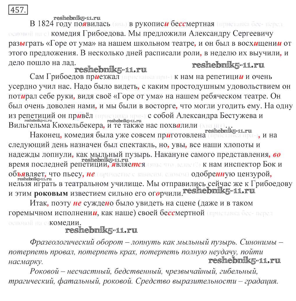 Готовая домашняя работа с ответами по Русскому языку за 10, 11 класс Греков, Крючков, Чешко Учебник Просвещение 2016 - Упражнения 457