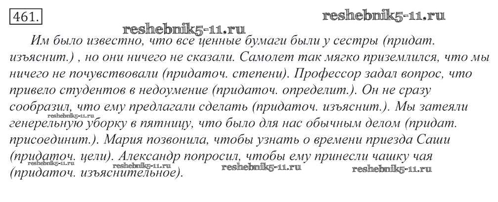 Готовая домашняя работа с ответами по Русскому языку за 10, 11 класс Греков, Крючков, Чешко Учебник Просвещение 2016 - Упражнения 461