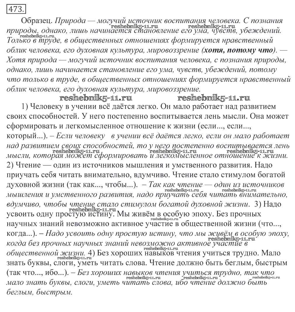 Готовая домашняя работа с ответами по Русскому языку за 10, 11 класс Греков, Крючков, Чешко Учебник Просвещение 2016 - Упражнения 473