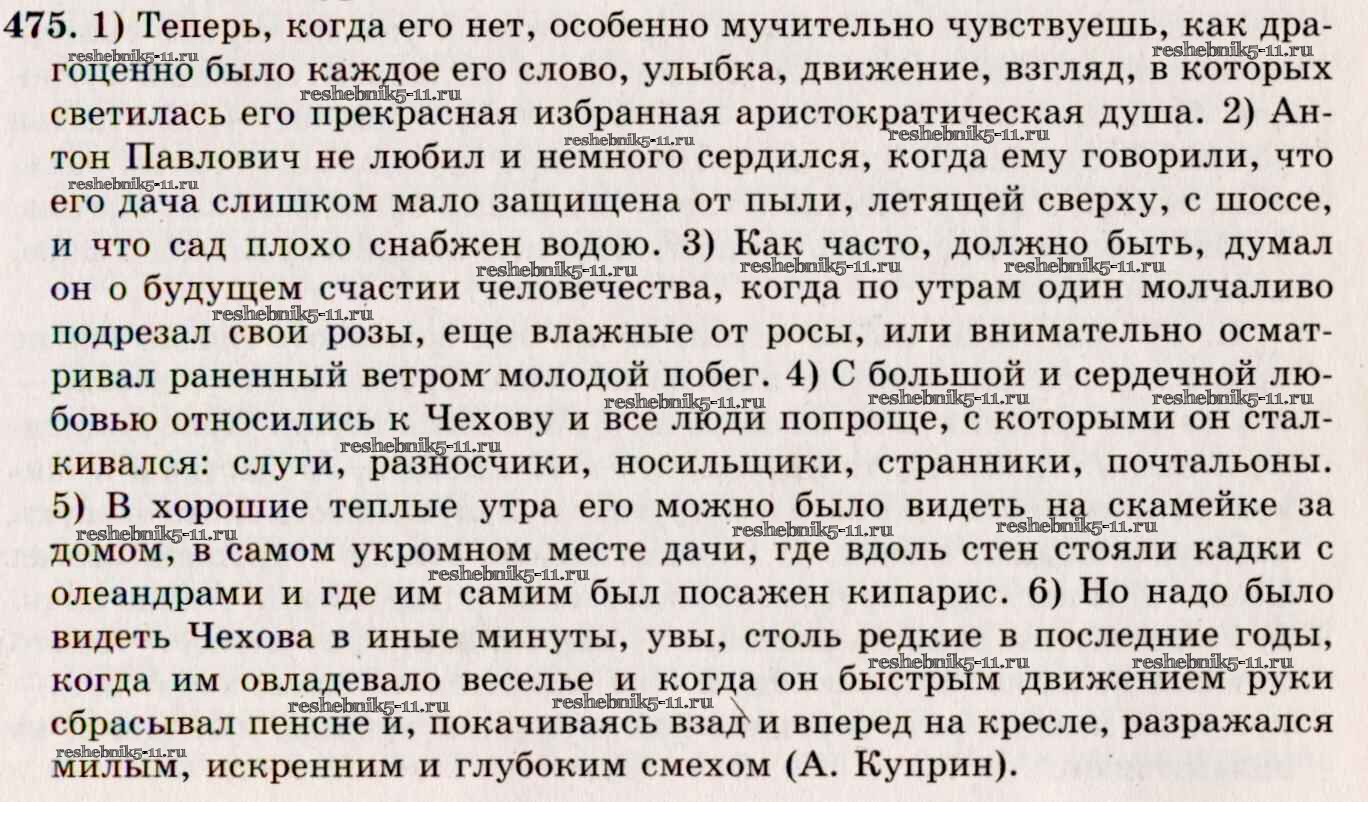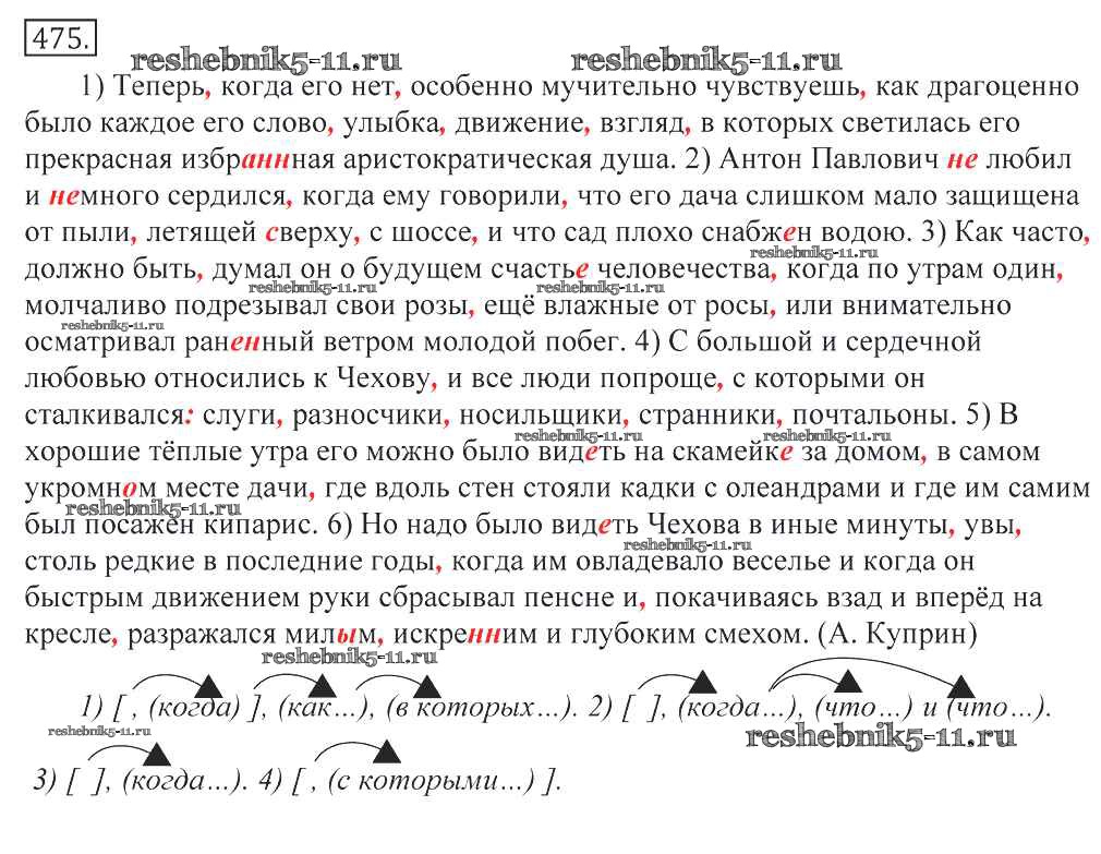 Готовая домашняя работа с ответами по Русскому языку за 10, 11 класс Греков, Крючков, Чешко Учебник Просвещение 2016 - Упражнения 475