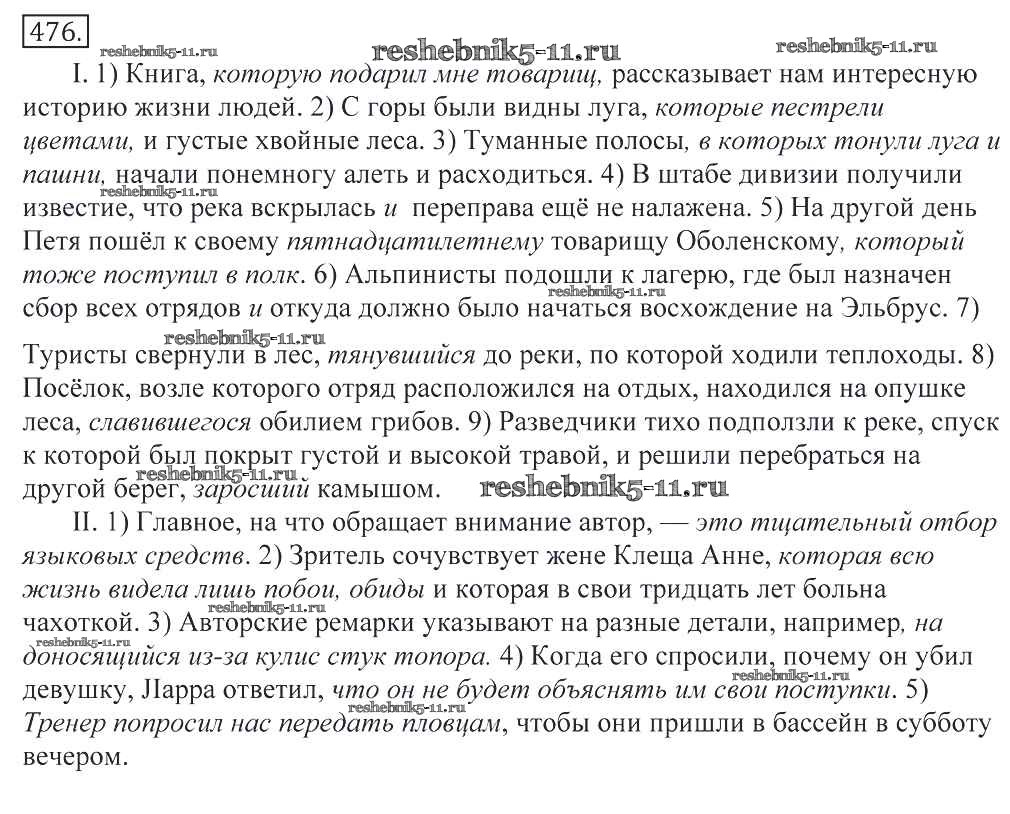 Готовая домашняя работа с ответами по Русскому языку за 10, 11 класс Греков, Крючков, Чешко Учебник Просвещение 2016 - Упражнения 476