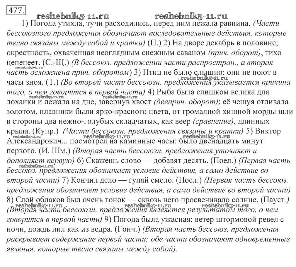 Готовая домашняя работа с ответами по Русскому языку за 10, 11 класс Греков, Крючков, Чешко Учебник Просвещение 2016 - Упражнения 477
