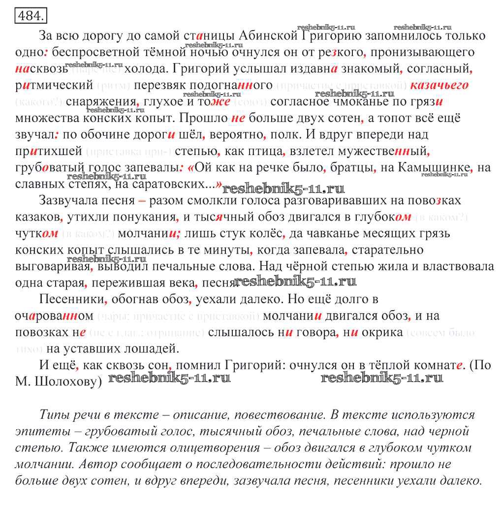 Готовая домашняя работа с ответами по Русскому языку за 10, 11 класс Греков, Крючков, Чешко Учебник Просвещение 2016 - Упражнения 484