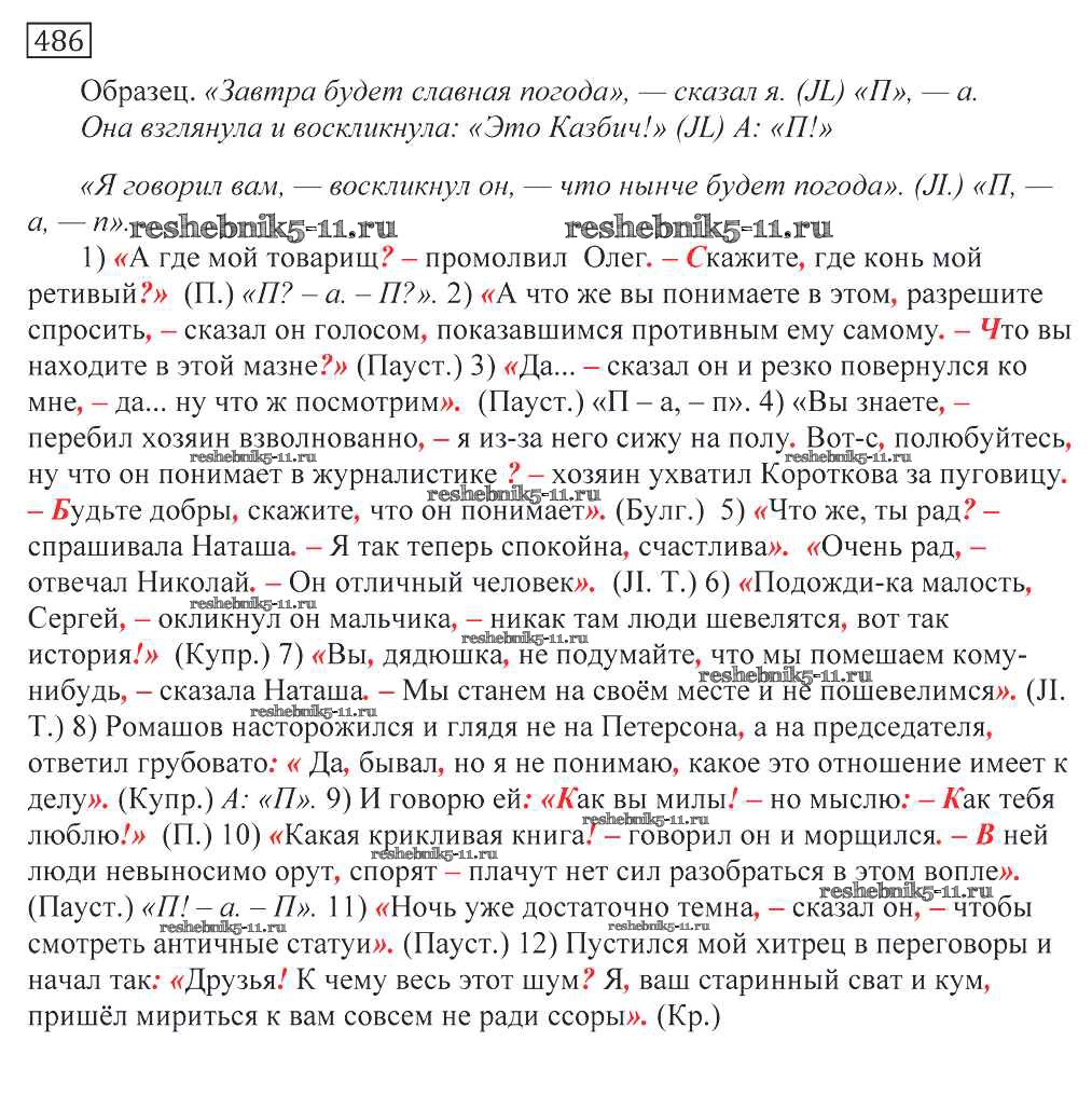 Готовая домашняя работа с ответами по Русскому языку за 10, 11 класс Греков, Крючков, Чешко Учебник Просвещение 2016 - Упражнения 486