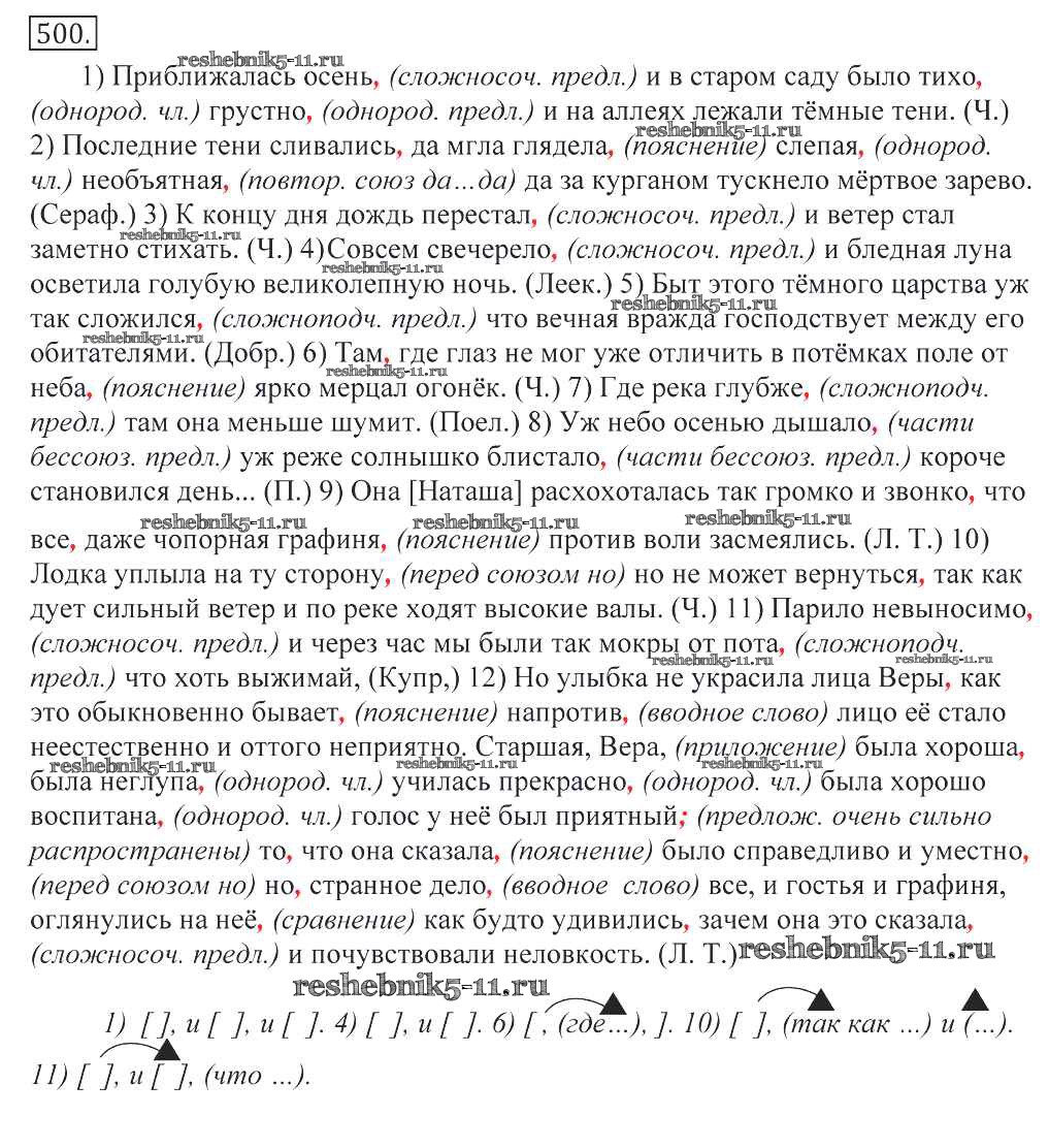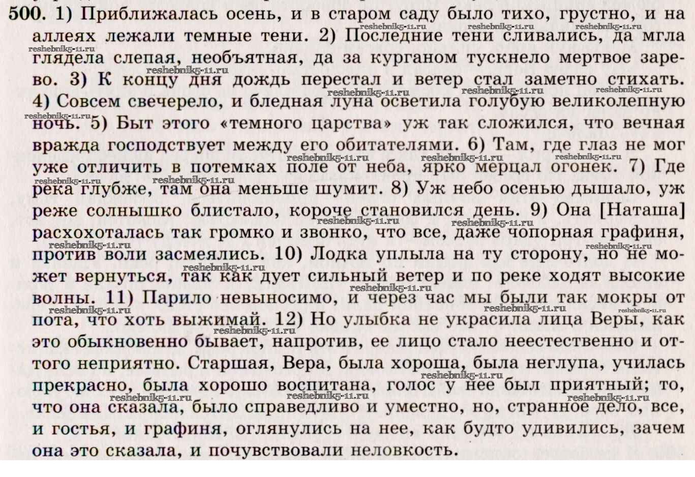 Готовая домашняя работа с ответами по Русскому языку за 10, 11 класс Греков, Крючков, Чешко Учебник Просвещение 2016 - Упражнения 500