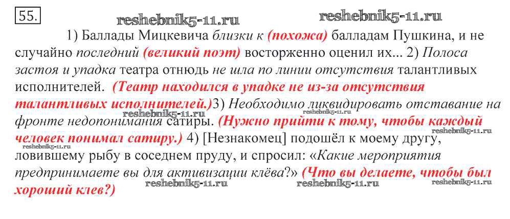 Готовая домашняя работа с ответами по Русскому языку за 10, 11 класс Греков, Крючков, Чешко Учебник Просвещение 2016 - Упражнения 55