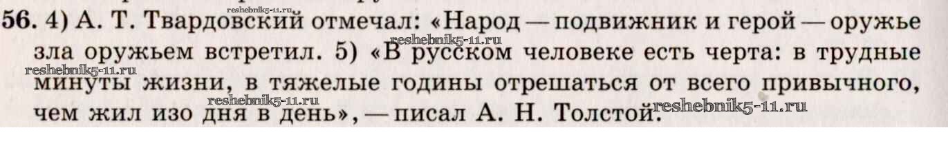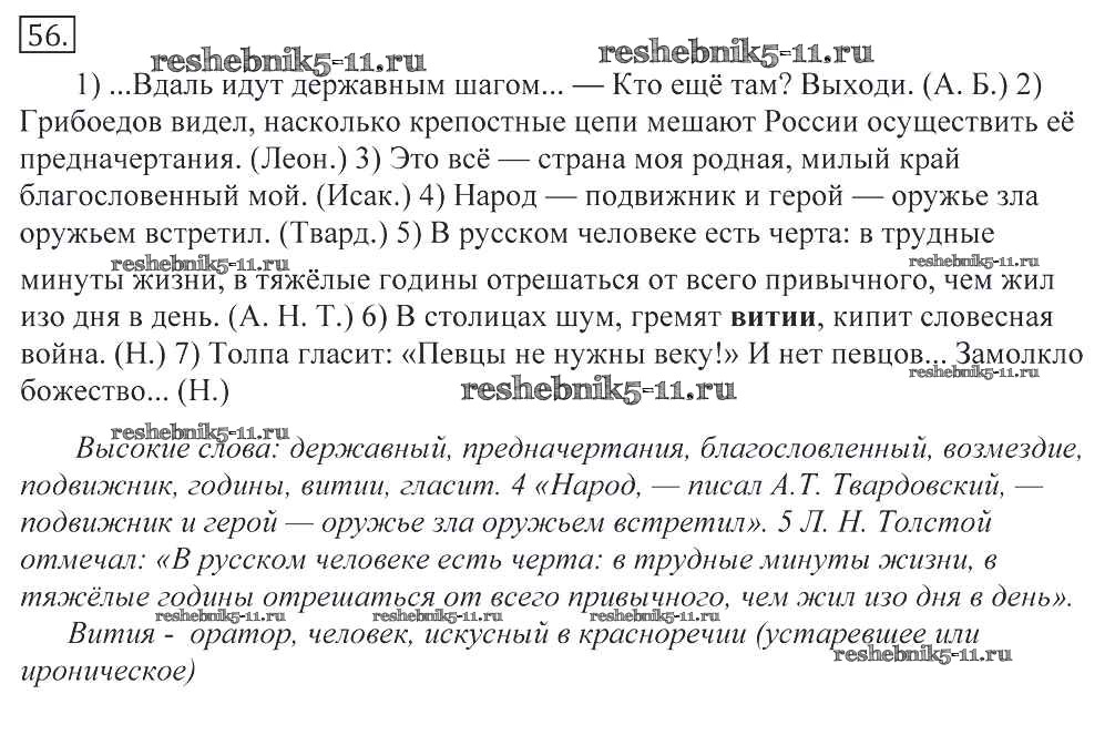 Готовая домашняя работа с ответами по Русскому языку за 10, 11 класс Греков, Крючков, Чешко Учебник Просвещение 2016 - Упражнения 56