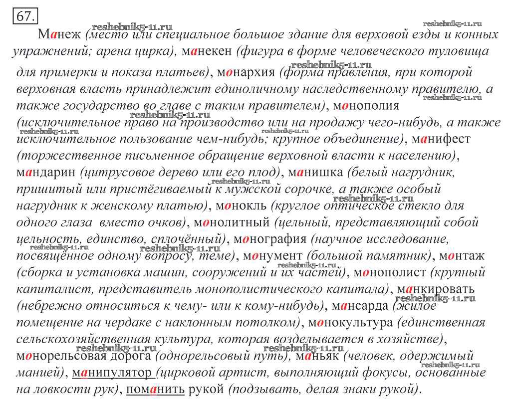 Готовая домашняя работа с ответами по Русскому языку за 10, 11 класс Греков, Крючков, Чешко Учебник Просвещение 2016 - Упражнения 67