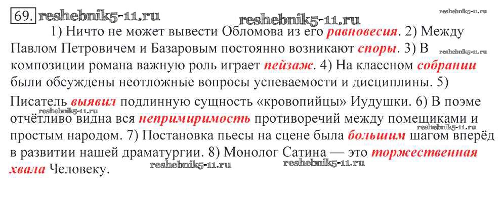 Готовая домашняя работа с ответами по Русскому языку за 10, 11 класс Греков, Крючков, Чешко Учебник Просвещение 2016 - Упражнения 69